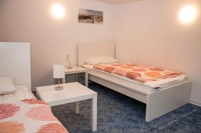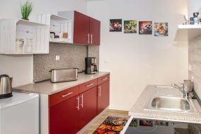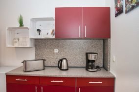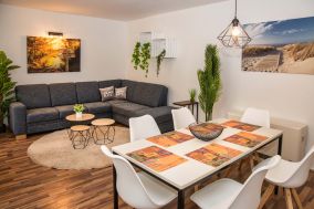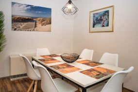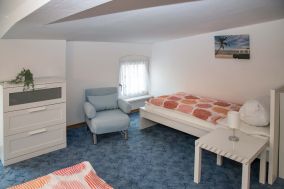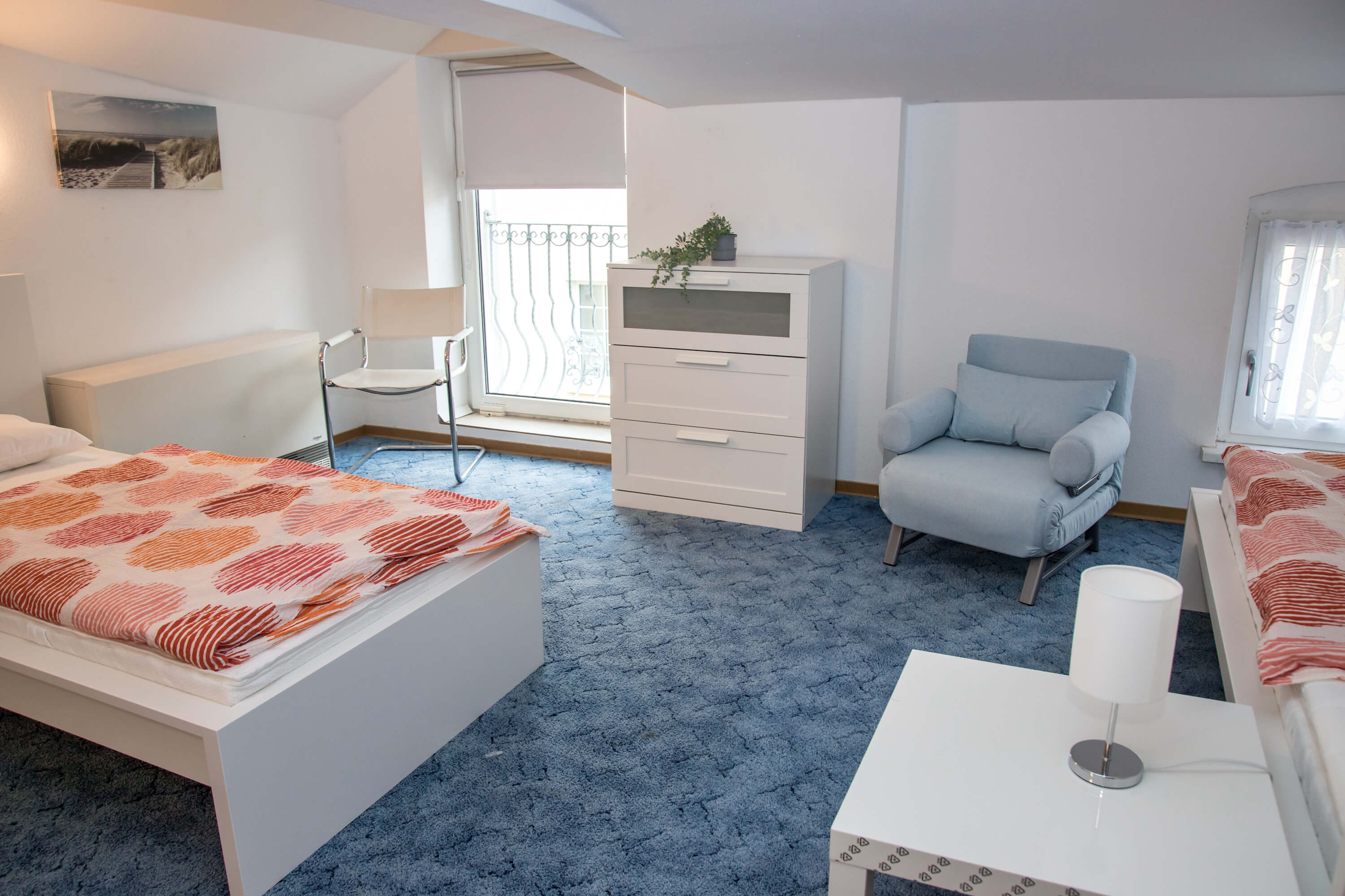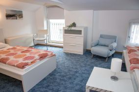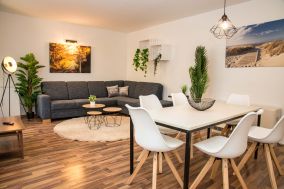 Quartier "Hamburg" ist eine sehr geräumige drei Zimmer Maisonette Wohnung mit jeweils 3 Doppelzimmern. Mit der großen Küche ist sie Ideal für Selbstversorger geeignet. Die Küche ist vollständig eingerichtet und verfügt unter anderem über einen Herd, einen Kühlschrank, Mikrowelle. Kaffeemaschine uvm..